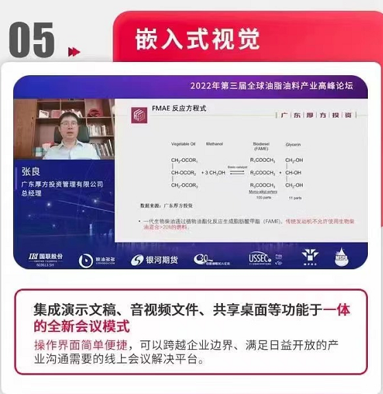 Fifth, the embedded visual upgrade integrates functions such as presentation, audio and video files, and shared desktop into a new conference mode.