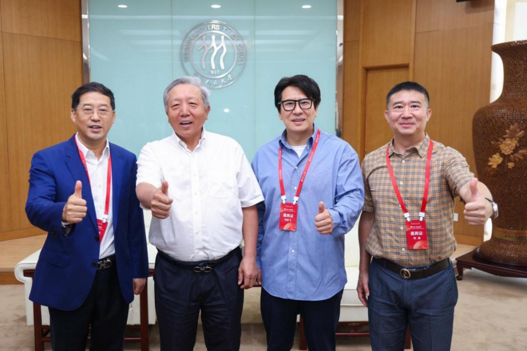 (From left to right: Li Jun, Chairman of Riyad (Stock Code 300296), Wu Xiaoqiu, former Vice President of Renmin University of China and Vice President of the Alumni Association, Liu Lefei, Chairman of Yuanfeng Fund, Liu Quan, Chairman of IBI)