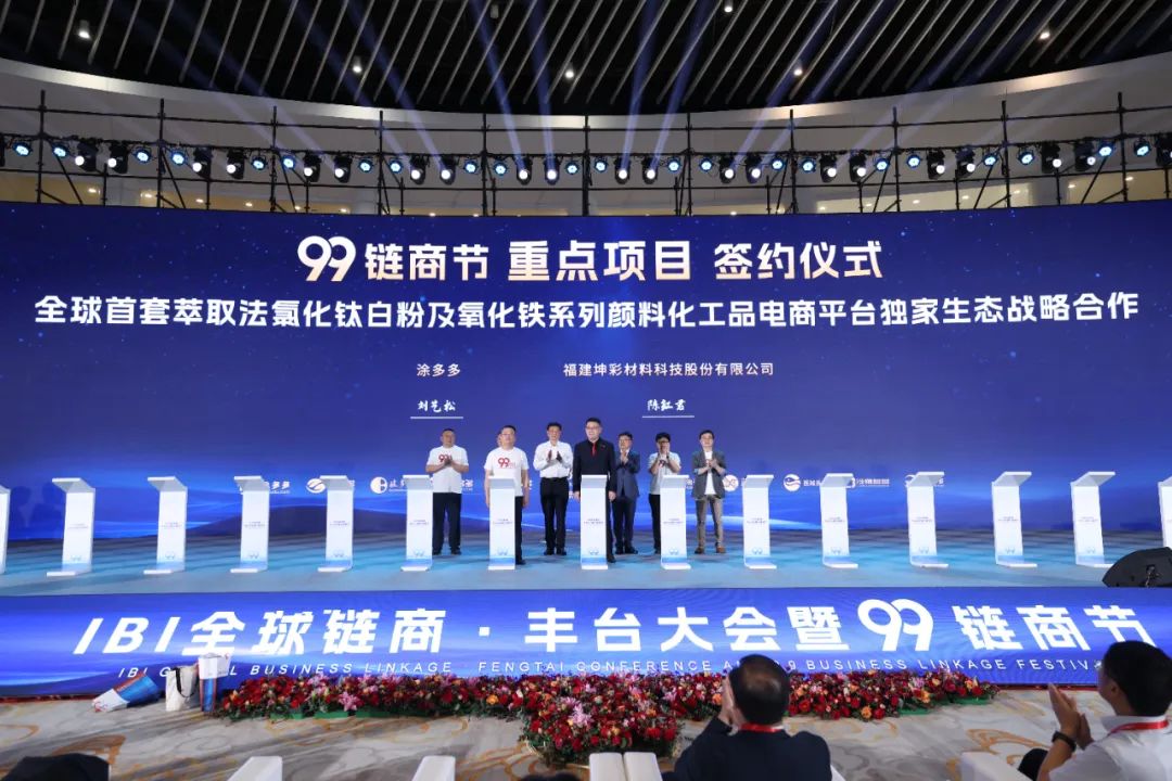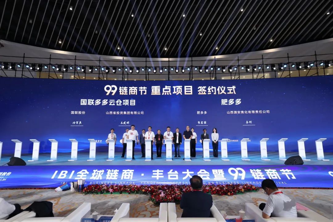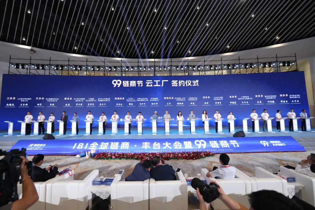 At the conference site, Fengtai District Deputy Secretary and District Chief Chu Junwei joined hands with Vice President of China Federation of Logistics & Purchasing Ren Haoxiang, President of China Coating Industry Association Liu Pujun, Secretary-General of China Inorganic Salts Industry Association Ye Lijun, Vice President of China Grain Industry Association Heng Hong, Secretary-General of China Phosphate Fertilizer Industry Association Li Guang, Secretary-General of the National Vanadium and Titanium Industry Alliance Zhang Bangxu, Executive Vice President and Secretary-General of China Pesticide Industry Association Li Zhonghua, Secretary-General of China Information Association Industrial Internet Branch Zhang Jian, Secretary-General of Zhongguancun High-tech Enterprise Association Lu Man, and other government and association leaders to press the start button of the Duoduo 99 Chain Business Festival together with IBI directors, supervisors, senior executives, and CEOs from Duoduo platforms.